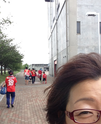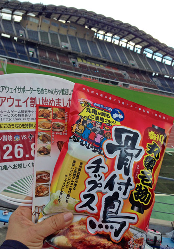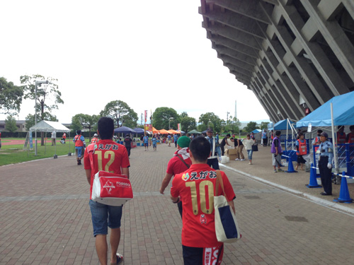 そしてアウェーサポーター入場口では、担当スタッフの皆さんから盛大に歓迎されました。「お疲れ様でした!」「良くご無事で!」「どのルートで来られたんですか」と口々に長旅を労ってくださいました。ここでもう心の半分は讃岐ファンになってしまったロアッソサポです。本当に嬉しかった!
