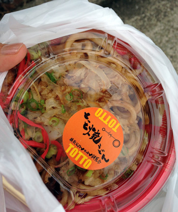 余談だけど、試合が終わって暗くなった中、とんでもなドローゲームに傷心で帰途についた熊本サポに、お店を仕舞う直前だったであろうこのお店の方が「台風の中、讃岐まで来てくれてありがとう。気をつけて帰ってね」との言葉とともに、肉丼を3つも手渡してくださったという話を聞いて現物見たとき、暖かい丼の入った袋の重さにものすごく感動してしまった。