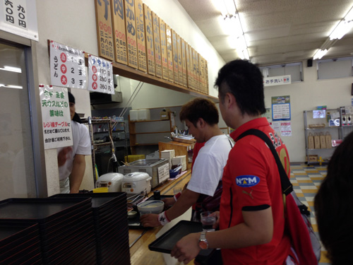 スタジアムを出てすぐ歩いて5分もかからないところにある老舗らしいうどん屋さん。現地に来るとわかるけど、こういうお店は閉店がとても早い。午後5時なんてざら。ここは午後7時まで開いているのでロアッソサポ襲来。