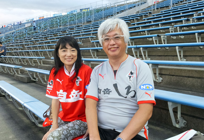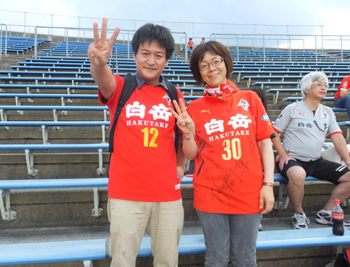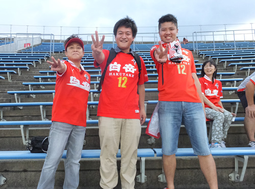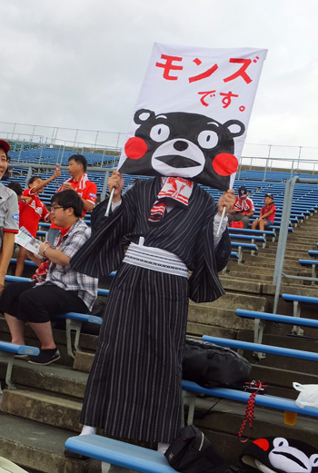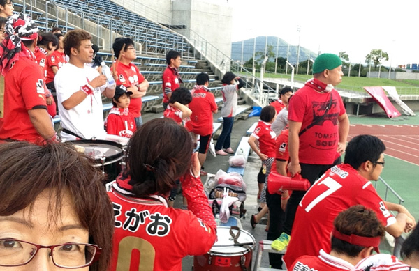 アウェー愛媛戦のホリゴメくんに輪を掛けて気になる人たち。目の前でボール蹴ってるし選手に大声で指示出してる。ロアッソに居た頃と同じサッカー小僧の集団で、カマタマーレのためにがんばってる。