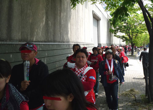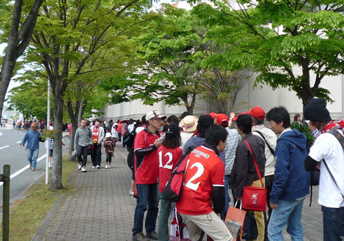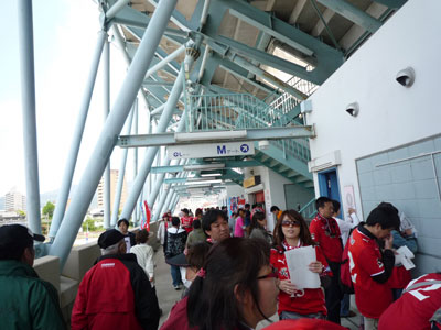歩道の対岸から見た人によれば300mは繋がってたようです。素晴らしき哉ロアッソサポーター♪