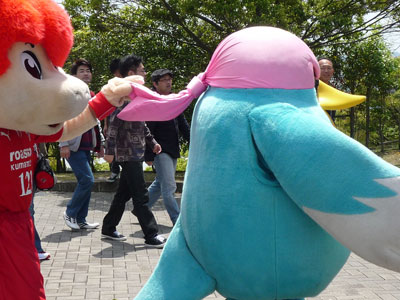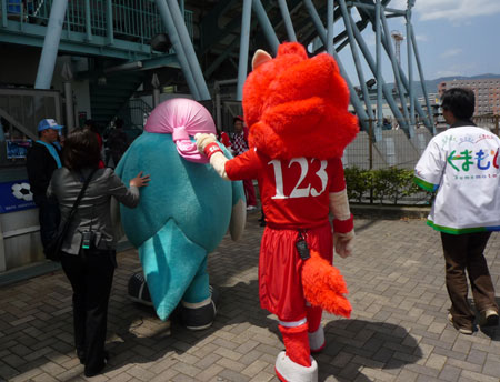 やっぱりこのコンビは和みますねえ。ロアッソがJ2に加入してロアッソくんが誕生して初めて仲良くしてくれたウィントスくんはサポとしても何だか深い親しみがありますもん。