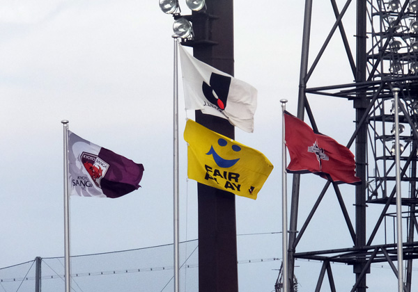 もう少し傾斜のあるスタンドだと綺麗に見えると思うんです「紫魂」フラッグ。