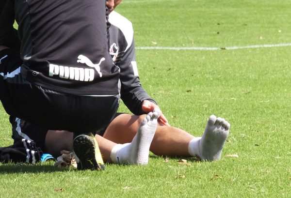 ふだんはスパイク履いてて見えない選手の足先にどうしても目が行くんですが。