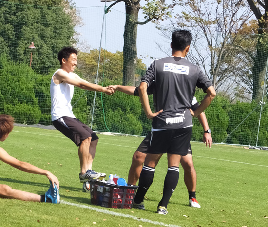 まるでモデルのよーなイケメンコーチのお二人。これが見られる練習場はロアッソだけ!(笑)