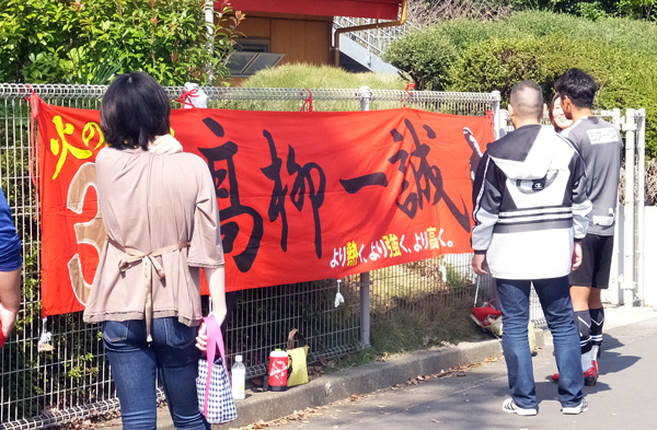 37番くんは東京からお越しのサポさん作の横断幕にもサイン。自分のシルエットなのに「これソノさん?」と聞いたらしい。嬉しいくせに〜(笑)