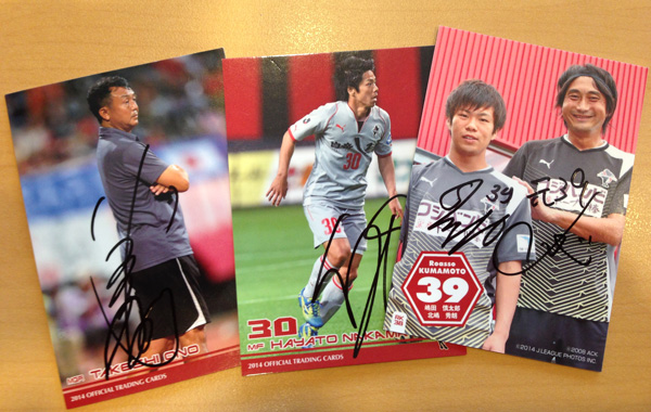サイン書いてもらいながら「京都戦行きました」と言ったら監督が「そうですかー!もう少しでしたけどね〜残念でした。明日はがんばります」と立て板に水のお言葉が返ってきたもの。そのときの笑顔が本当にステキで、もう絶対小野監督と一緒にJ1に行きたい!!と思ってしまった。