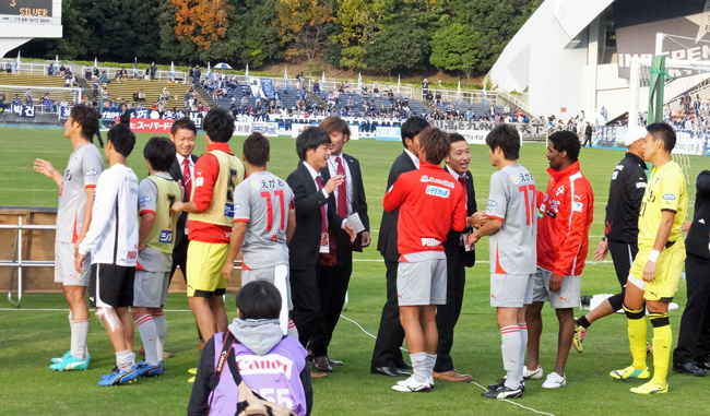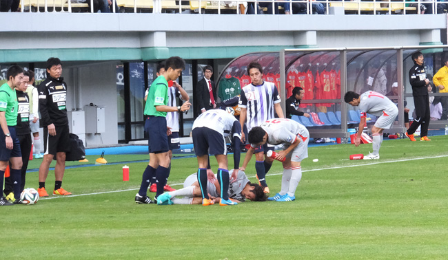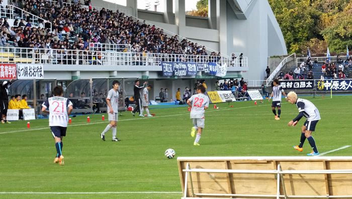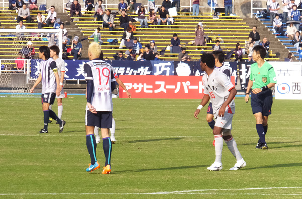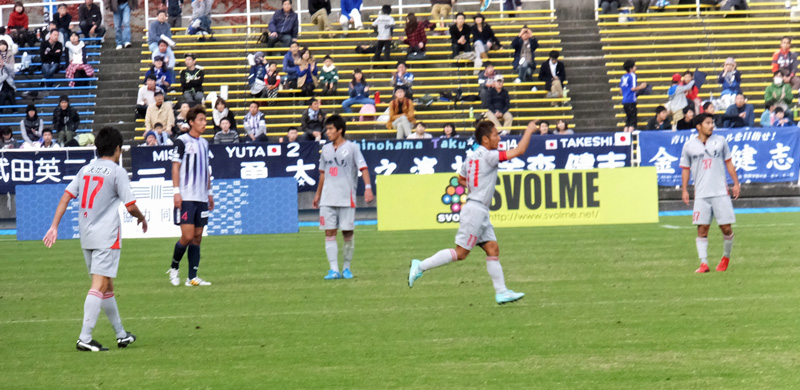 さらに向こう側でゴチャゴチャしてるときに2点目。これまた誰だ誰だと見てたら、今度はツツミンのオウンゴールだった。