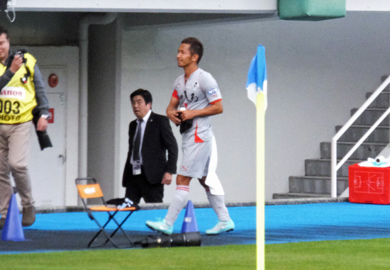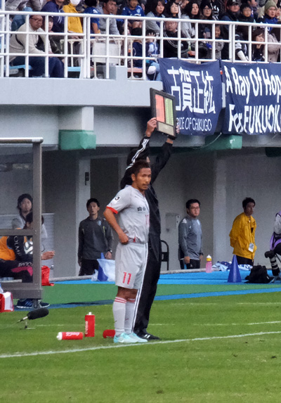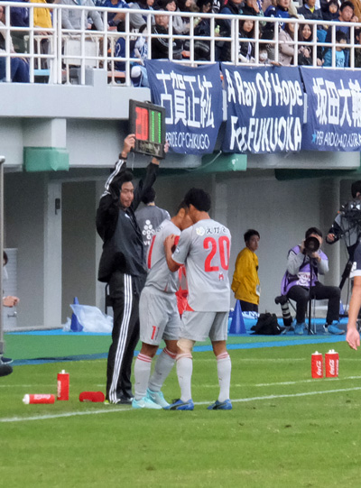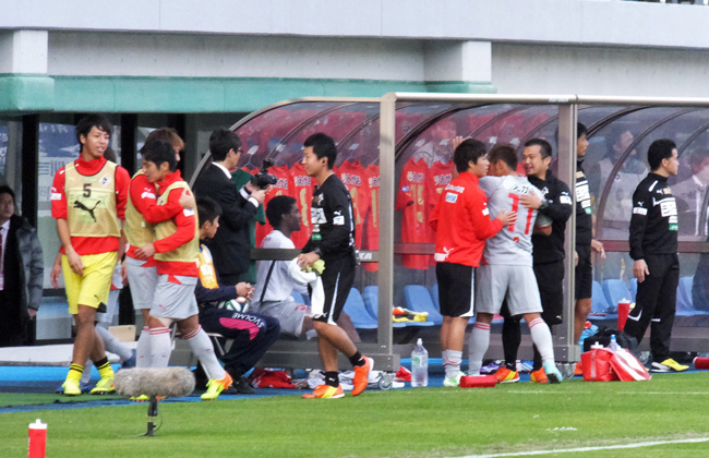 ベンチからスタッフが控え選手の元へ走ったのを横目に見て、来た!とざわつくゴール裏。