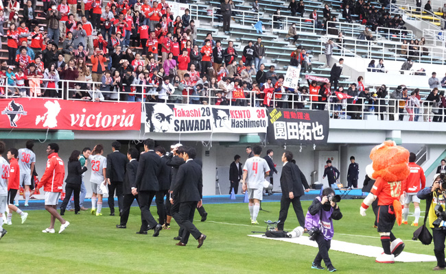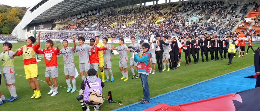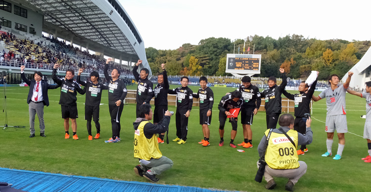 福岡の最終戦セレモニーの前に勝利セレモニーをさせてもらって福岡サポさんには申し訳ない気持ちもありましたが、これで安心して来シーズンを迎えられます。