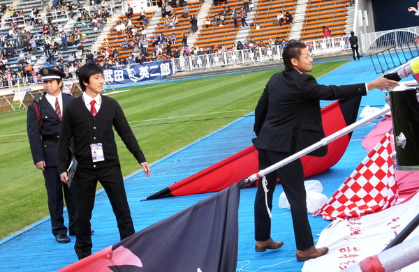 試合はTV録画を見ればある程度記憶を辿れるけど、カメラに映らないところに大いなる魅力があるのがスタジアムなので、試合が途切れるたびにカメラをそちらに向けていたように思います。