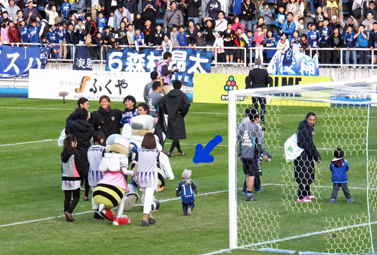 最後にアビスパ選手と一緒にピッチを一周していたチビビー発見したのでご報告。この背番号はもしかして? ともかく後ろ姿が激カワでした(^_^)