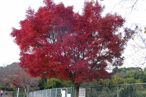 レベスタを出たところの広葉樹は、ロアッソの勝利を祝ってくれてるような赤でした♪
