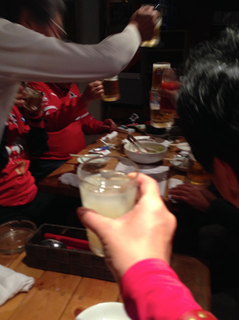 熊本に帰ったら祝勝会。アウェーで勝つって本当に気持ちいいもんです。