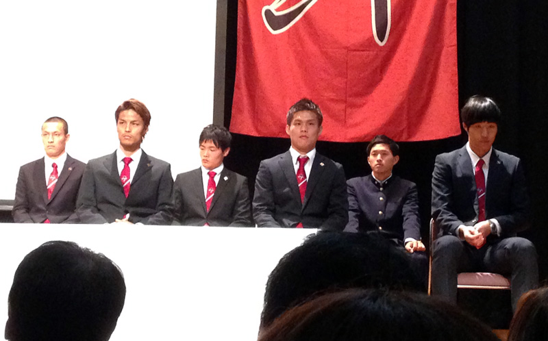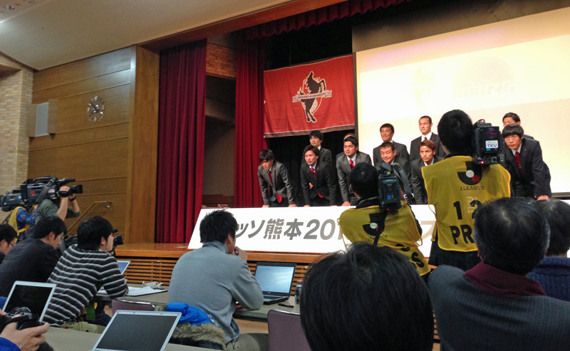 熊本メディアの重鎮がこんなにお近くという恐れ多い場所で待つ2015新体制。