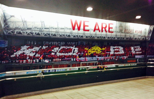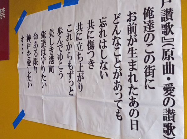 スタンドの入口には神戸讃歌の歌詞。一緒に歌っていると他県民でも胸に響きます。