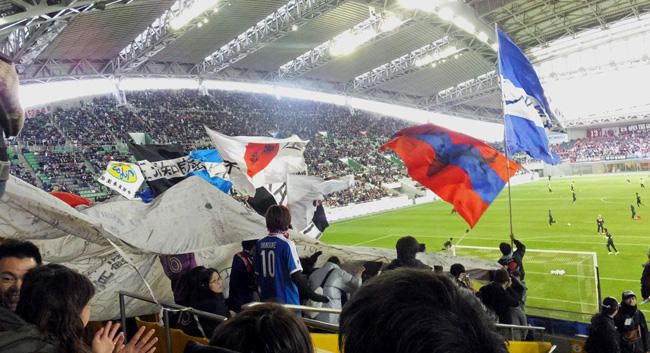JAPANスターズのゴール裏であの巨大日の丸フラッグが広がりました。
