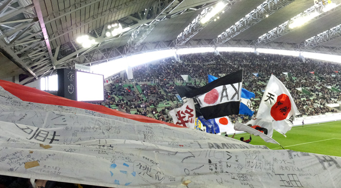 一昨年と同じくアウェー側から入場します。