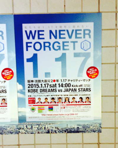 そこですごく感じたものをその後自分の年中行事にするため、今回は神戸ノエスタで開催の、同じ北嶋コーチ出場となった阪神淡路大震災20年チャリティマッチに参戦してきたので備忘録。