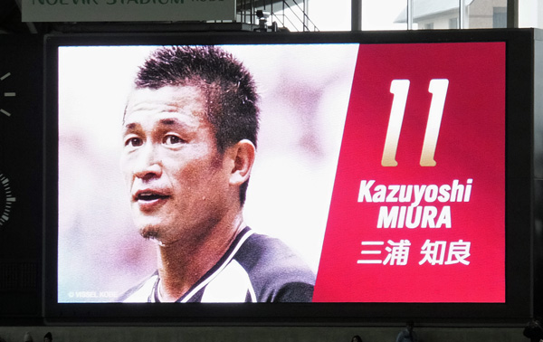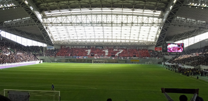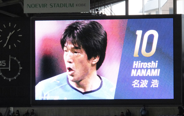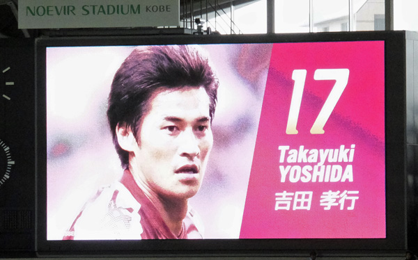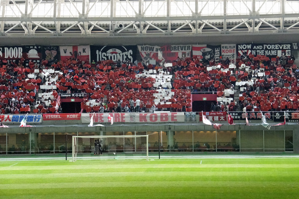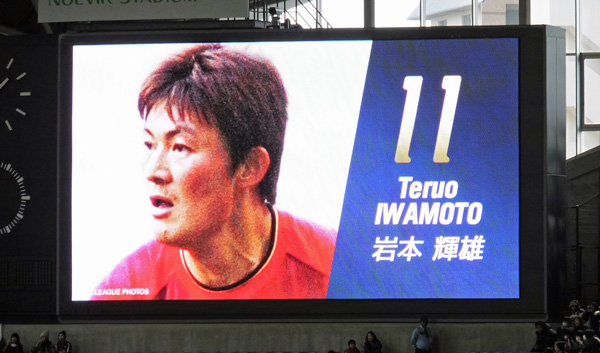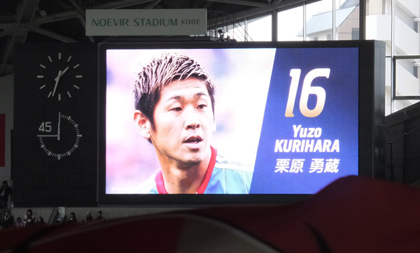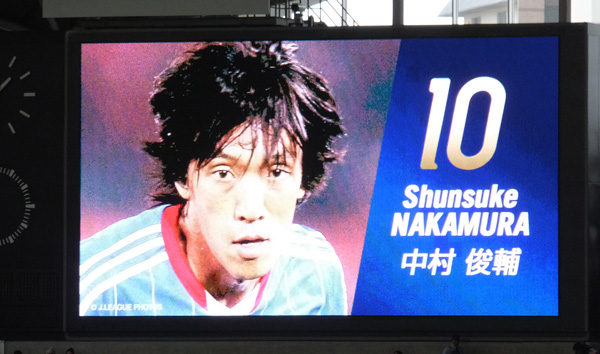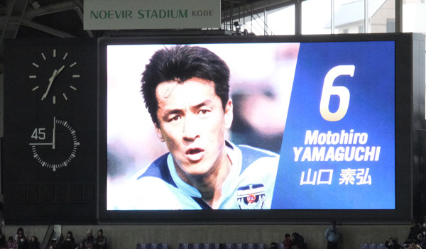 ちょうどホームとアウェーのコーナーサイドに二つ向かい合ってる電光掲示板のおかげで、ここではカラー映像がどこにいてもよく見える。