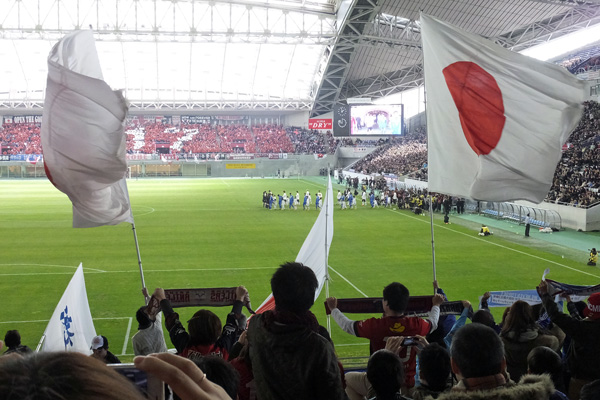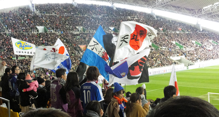 JAPANスターズのゴール裏は疑似日本代表ゴール裏でもあって、コールやチャントは代表戦で良く聞くリズム。
