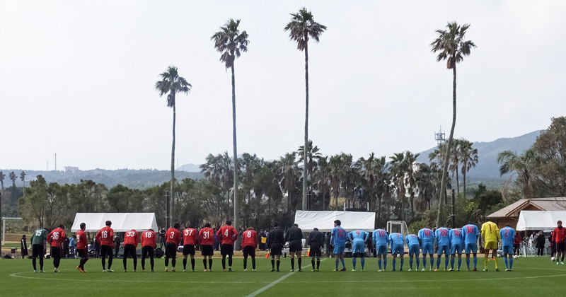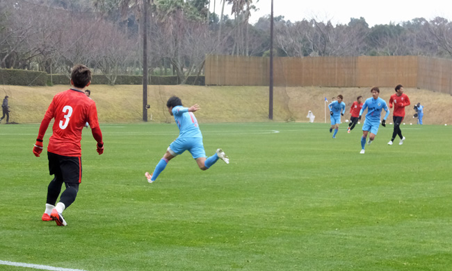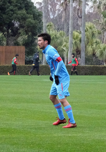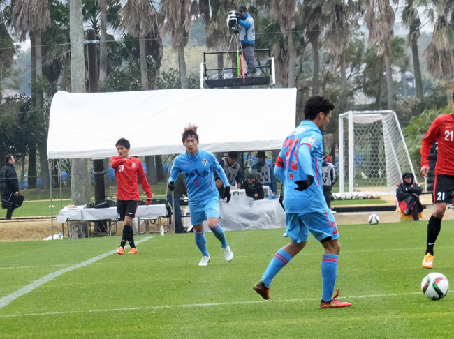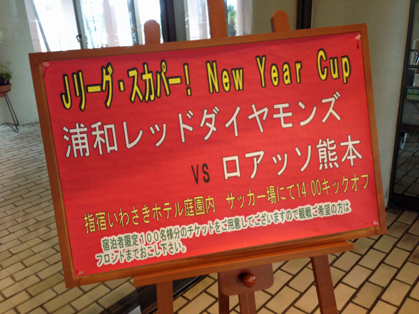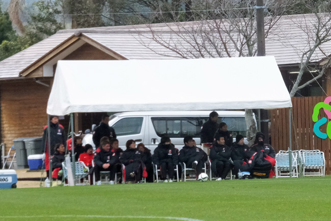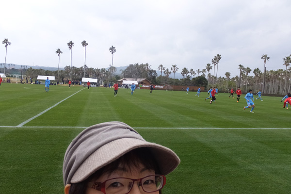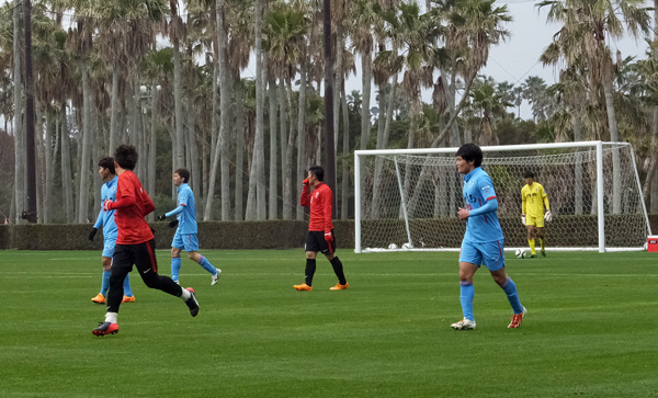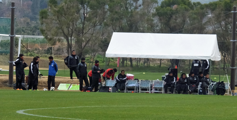 サッカー場に入ったら、そこではすでに試合が行われていてピッチには赤とブルーの選手が走り回ってました。どうやら1時間前からニューイヤーカップでなくTMが開始されていた模様。