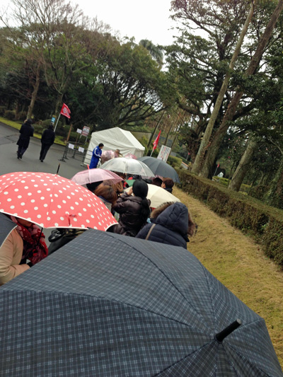 ロビーでお若いサポ仲間に遭遇したのでくっついて待機列に並びました。赤い人ばっかりだけど、たぶんウチらの他は全部浦和ファンだろうと推察。ここでロアッソサポは全然見かけなかった。