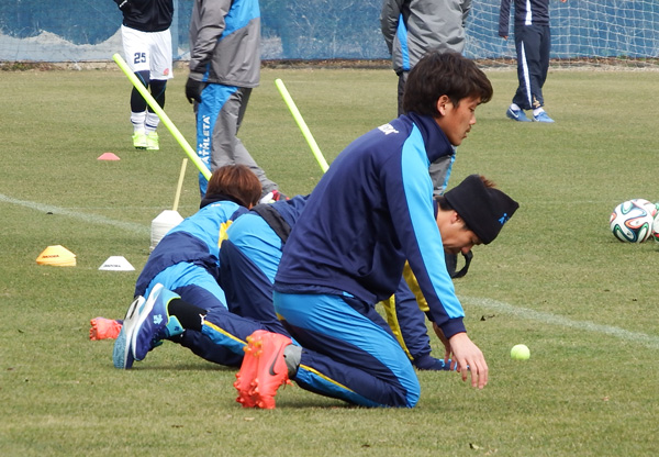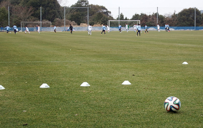宿泊ホテルの敷地内にサッカーフィールドがあって、どこへも行かずに練習三昧という点では指宿の柏や浦和と同じ環境。