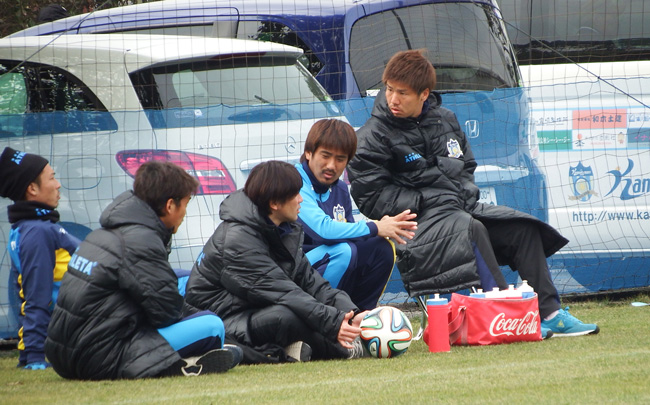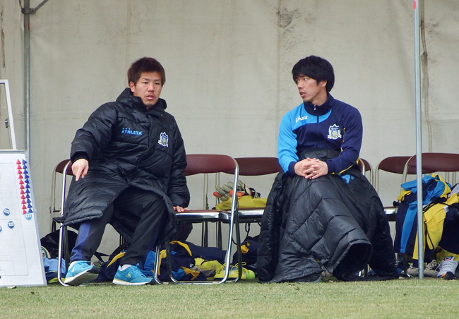 TMを見守る讃岐の選手たち。たぶんここには色々なクラブからやってきたプレーヤーがいるんだろうなと思います(ロアッソ以外あまりわからないけど)