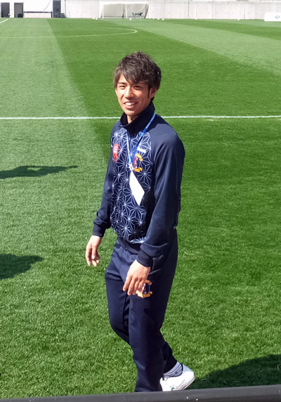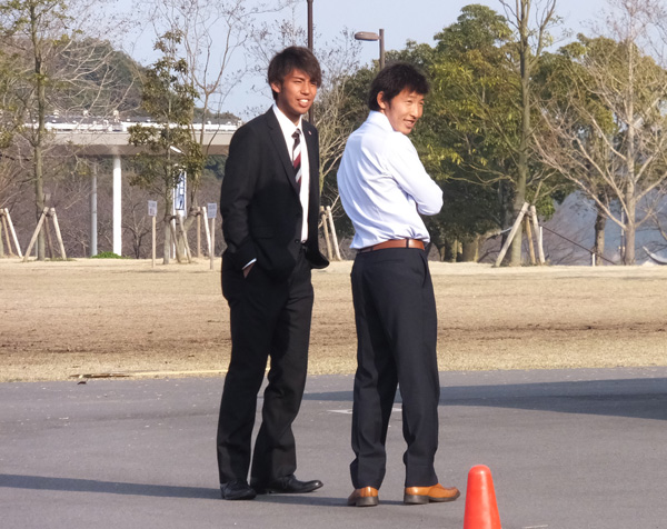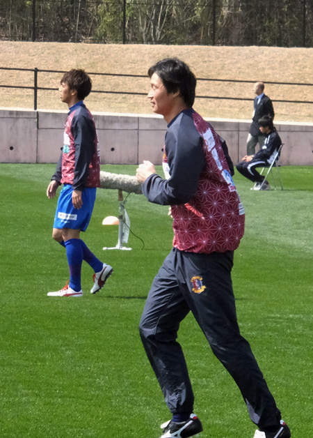 この日は出番がなかったけど、同じく入念に準備運動からランニングの岡山選手と甲斐くんのツーショット。偶然です。