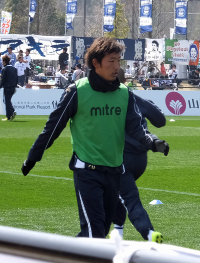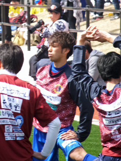 試合前ストレッチの甲斐くん。こんな姿を本当はロアッソで見たかったんだけどね。