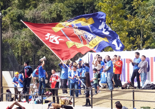 それぞれのゴール裏風景。JFLというと地味なイメージがあるけど、この2チームのサポーターさんたちは本当にユニークで個性的というか愛するクラブを応援することの楽しみ方をちゃんと知ってるんだなあと思います。だからどちらのサポでもない自分のような(ここでは)一サッカーファンでも、とてもワクワクする。ホントに楽しかったです(^^)