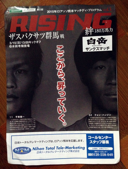 2015シーズン開幕戦だし、小野ロアッソ2年目の船出だし、スタメンの何人かはロアッソデビューだし。