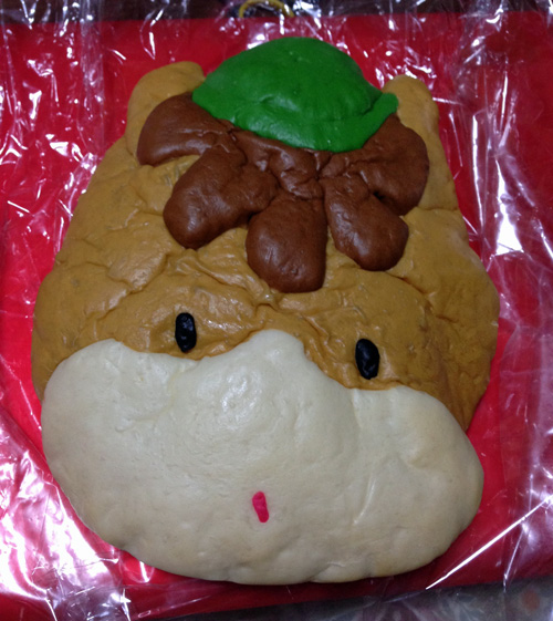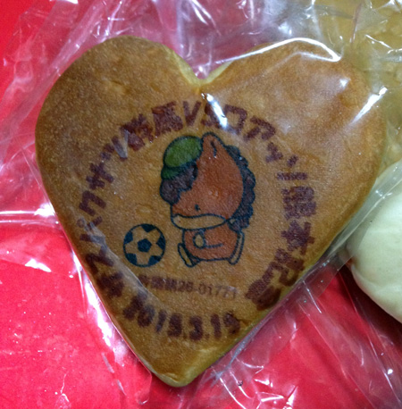 オーダーメードパン屋さんの今シーズン第一作めは相手チームの地元群馬県のゆるキャラ「ぐんまちゃん」パンでした。くまモンと同じく県に許可をもらえばキャラクターを使えった商品を作れるそうです。