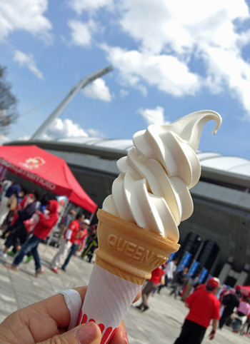 デザートはこちらのソフトクリーム。冷たいものが美味しい日差しでした。