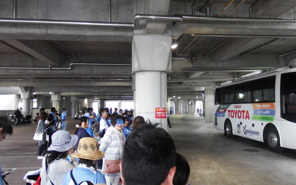 このスタジアムは雨が降っても気にすることなく選手をお見送りできる構造です。うらやましいなあ。