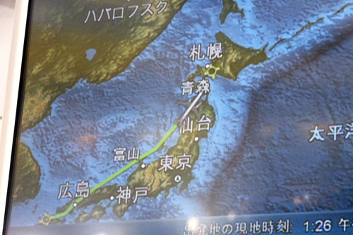 自衛隊の演習の影響で北海道上空をぐるぐる回ってようやく着陸。空から札幌ドームを見たのは初めてだった。