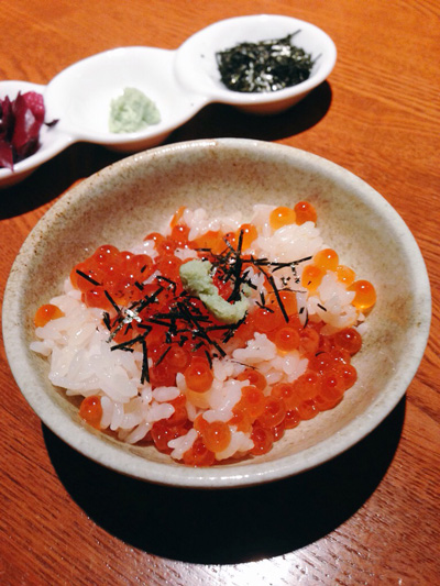 これがウワサのつっこ飯。ご飯の上から、おいさーおいさー!とお店の大将が惜しげも無く乗っけてくれるイクラが最高に美味いっ!