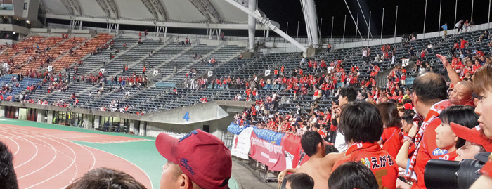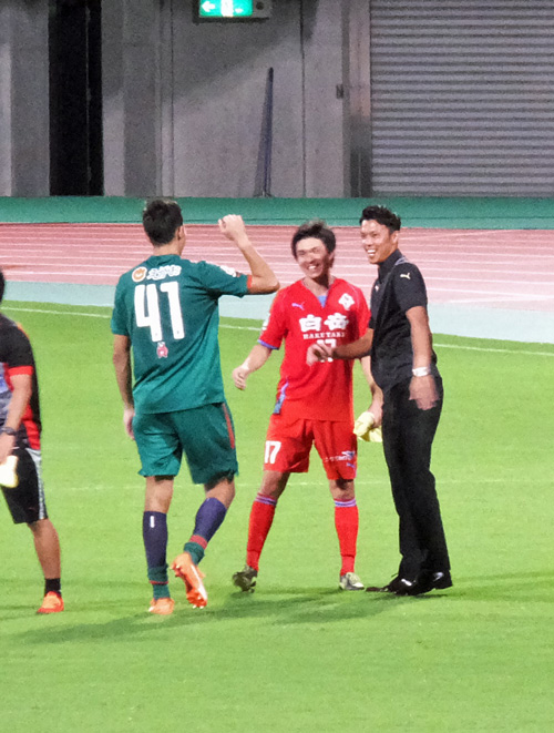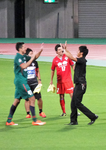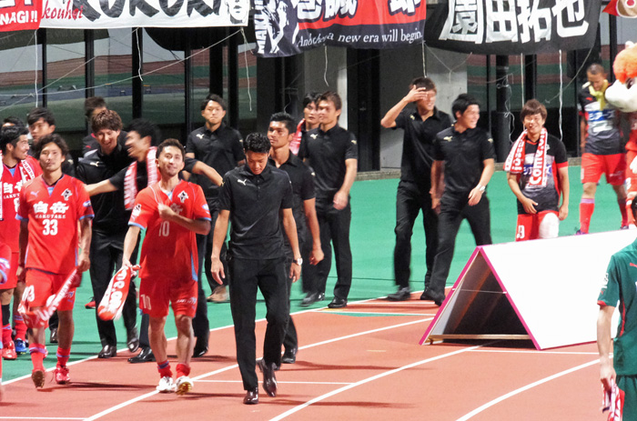 カモンロッソまでこの人の仕切りで始まった。昨年引退した藤本主税ジュニアユース監督ですらゴール裏から勧められて初めてだったのに、いやーたいしたたまげたショーマンシップ。(足怪我してるんじゃなかったっけ?)