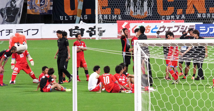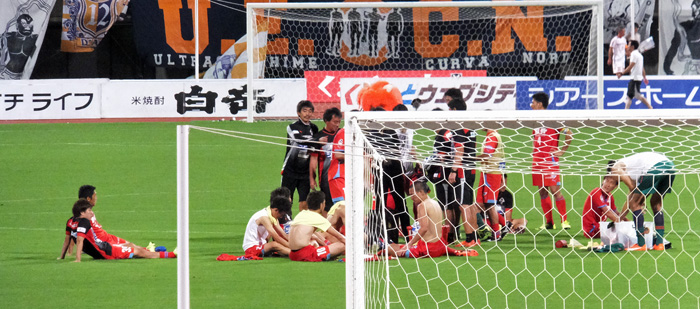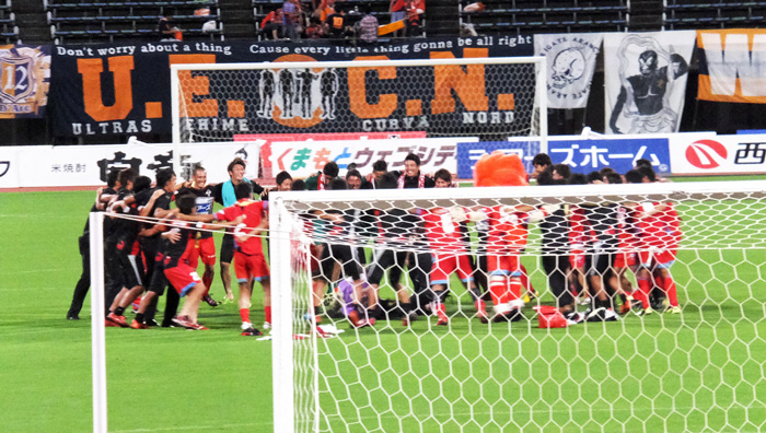 その直前に小さな子供でもわかる「蹴ったら入るゴール」を逃してたのもあって、まさかあの角度で足が出てくるとは思わず、一瞬愛媛DFのオウンゴールかと思いましたわ(^^;)