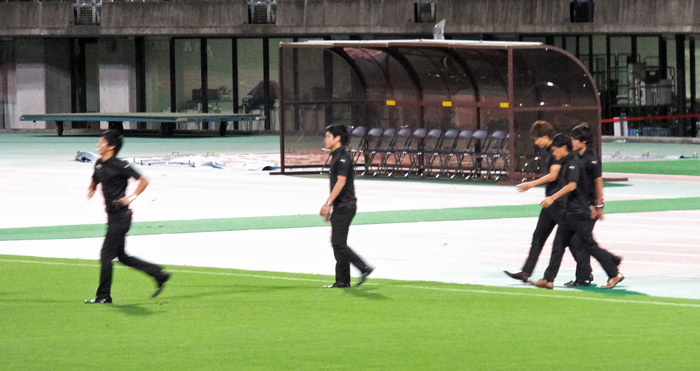 なんと控えの赤馬衆もピッチへやってきました。うわーい♪ あれでもみんなよそ行きの靴履いてるんですけど。ま、いいか。