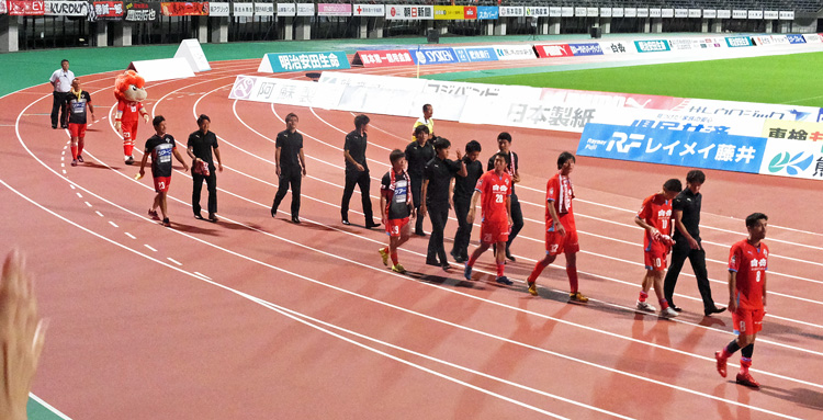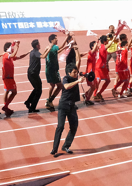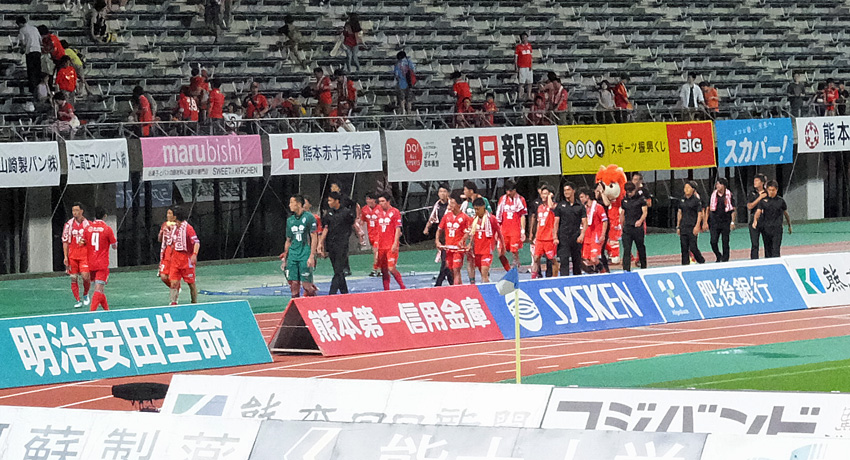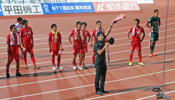 水前寺の勝利だとこれがない。ヒーローインタビューが見られないってのはサポーターにとってめちゃくちゃ味気ないんです。熊本市はそこら辺全然わかってない!