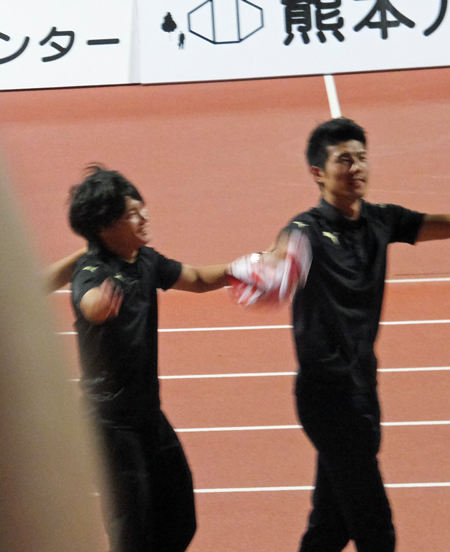 これまた10ヶ月ぶり。勝利のグルグル(正式名称なんですかこれ)も選手全員参加。黒装束のみんなは早くホームのロッソユニでグルグルしましょう!ぜひしましょう!!