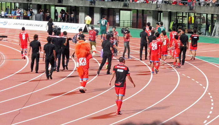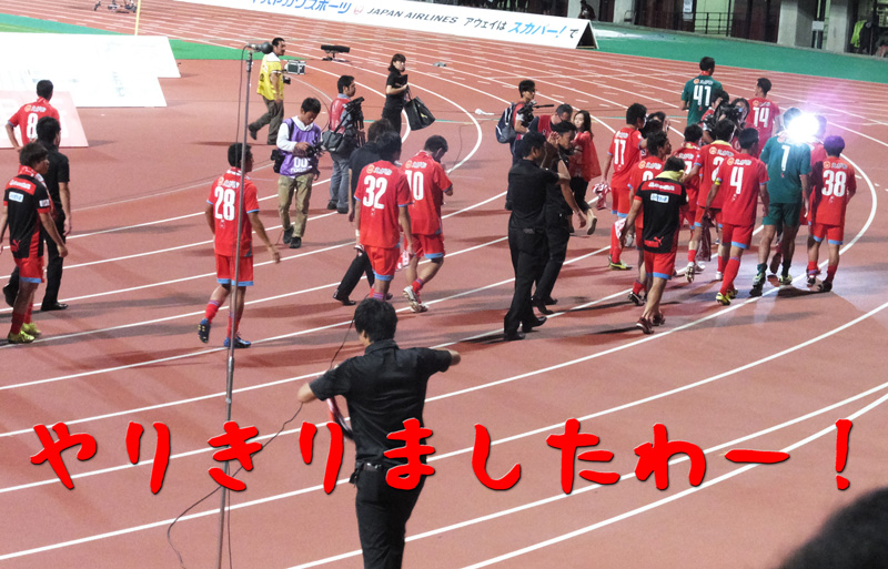 実はスタンドへの挨拶に来るまで、チームもこの勝利をじっくり喜ぶ時間を過ごしていたのでスカパー!の録画ではこのあとのカモンロッソが全部放送されていません。
