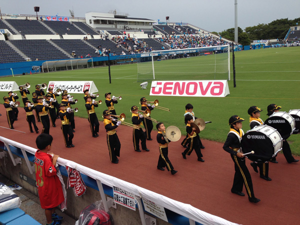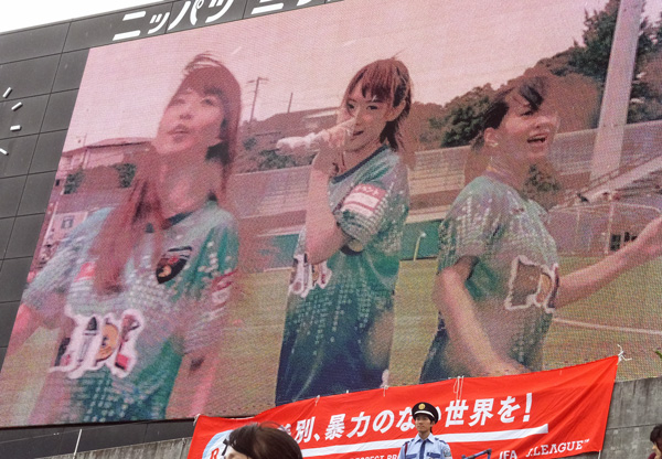 横浜にはスタジアムアイドルとかいうグループがあってホームゴール裏前でライブとトーク。中学生くらいで可愛いけど舌っ足らずで何を言ってるのかこっち側じゃよくわからなかった。何でも、みんな横浜大好きなんだそうです。これからもがんばってね♪