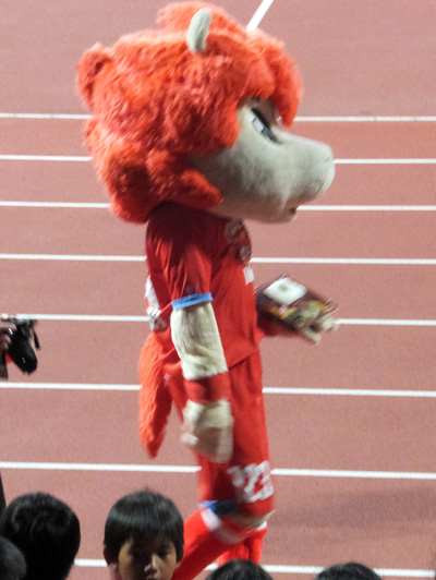 大旗を構えるころうくん。この子も地元よりうまスタで見る方が圧倒的に多いね。