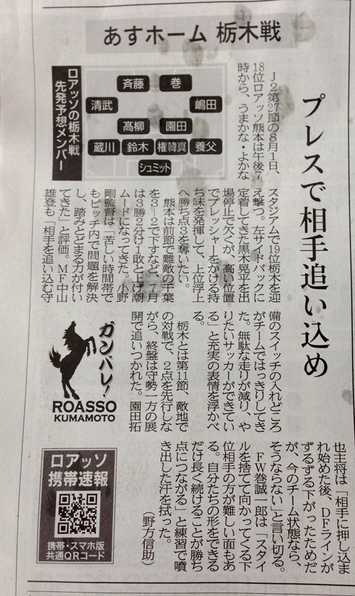 実は前半戦っても戦っても勝てなかったとき「こんなんで夏場の失速シーズンに突入したらロアッソにJ2残留はないんじゃないか」と危惧していました。