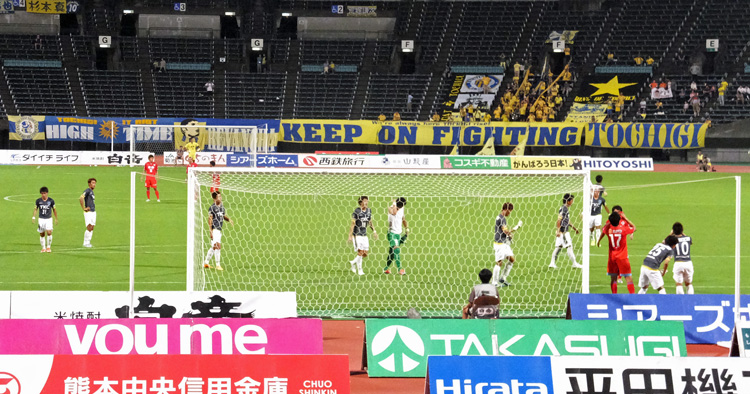 栃木も最後まで諦めてはいませんでした。ただ見ていると、1失点後「どうしても取るんだ」という意識の高さに選手間で温度差が見え隠れしてきたようにも思えました。