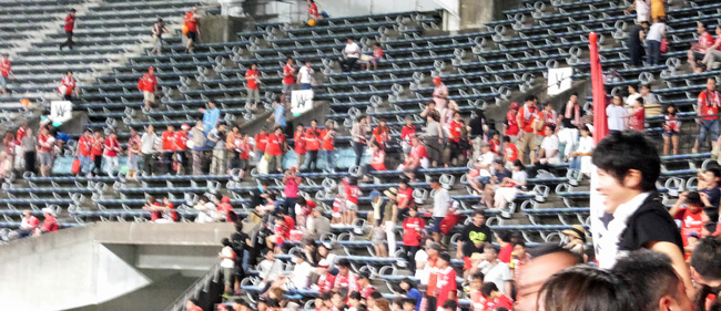 そんなこととはつゆ知らず、民族移動で赤くなったゴール裏は今日も元気にカモンロッソ!