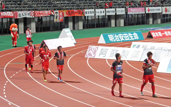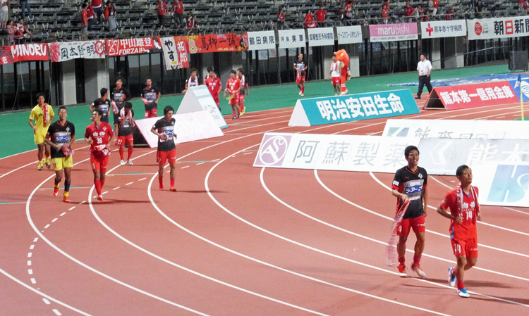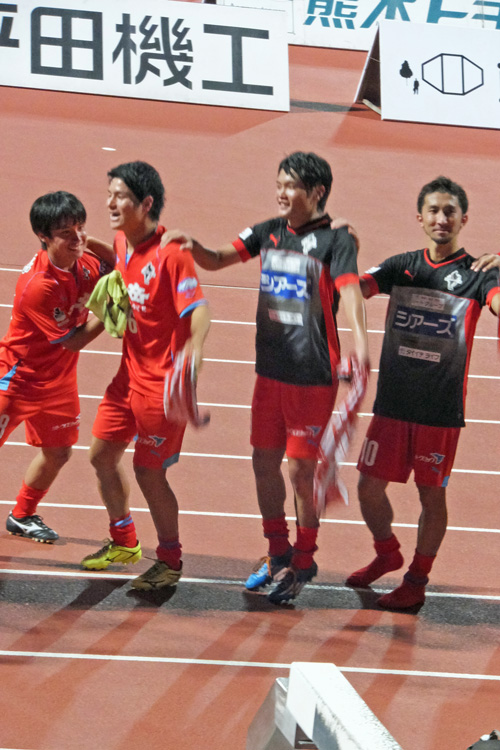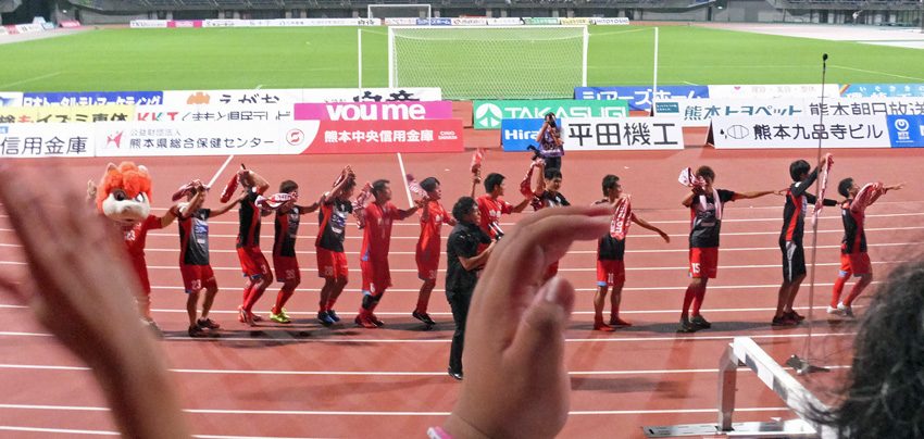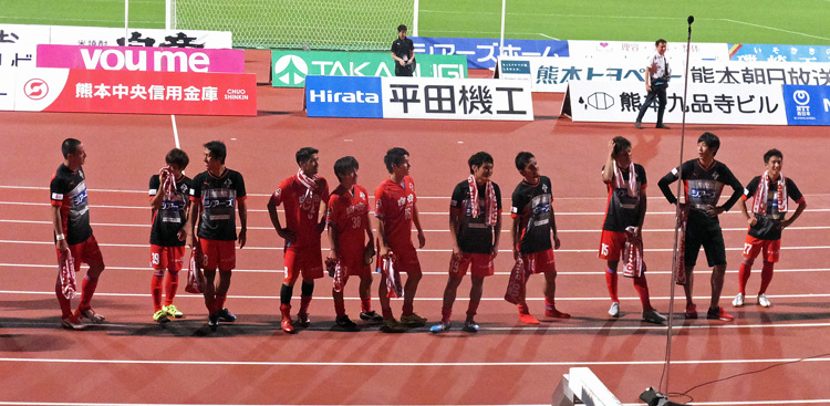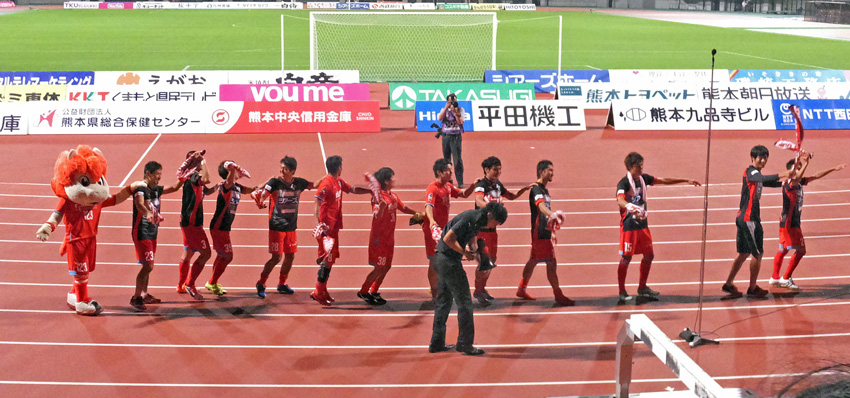 最初はカモンロッソだけだったのに、ピクニックやらグルグルやら煽りやらいろんな段取りが増えて放送時間枠に入りきれない勝利イベントになりつつあります。この暑さで最後まで試合して応援してそれ全部やって喜んじゃうロアッソ熊本のチームとサポーター。